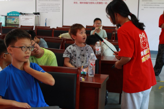 活动伊始,团队成员以通俗易懂的语言向同学们介绍上虞王充传统法治思想。通过漫画形式介绍王充所写著作《论衡》,并展示了上虞王充故里章镇镇,激发了同学们实地探访王充纪念馆的兴趣。随后,宣讲员普及了校园霸凌、故意伤害及刑事责任年龄划分等基础法律知识,引导青少年知法、懂法、守法,从小树立正确法治观念。互动环节中,一位二年级同学引用“小时偷针,大时偷金”的故事回答“为何要向青少年普法”,生动印证了普法教育的必要性和现场宣讲的初步成效。